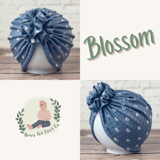 Ribbed Dusty Blue Hearts Turban