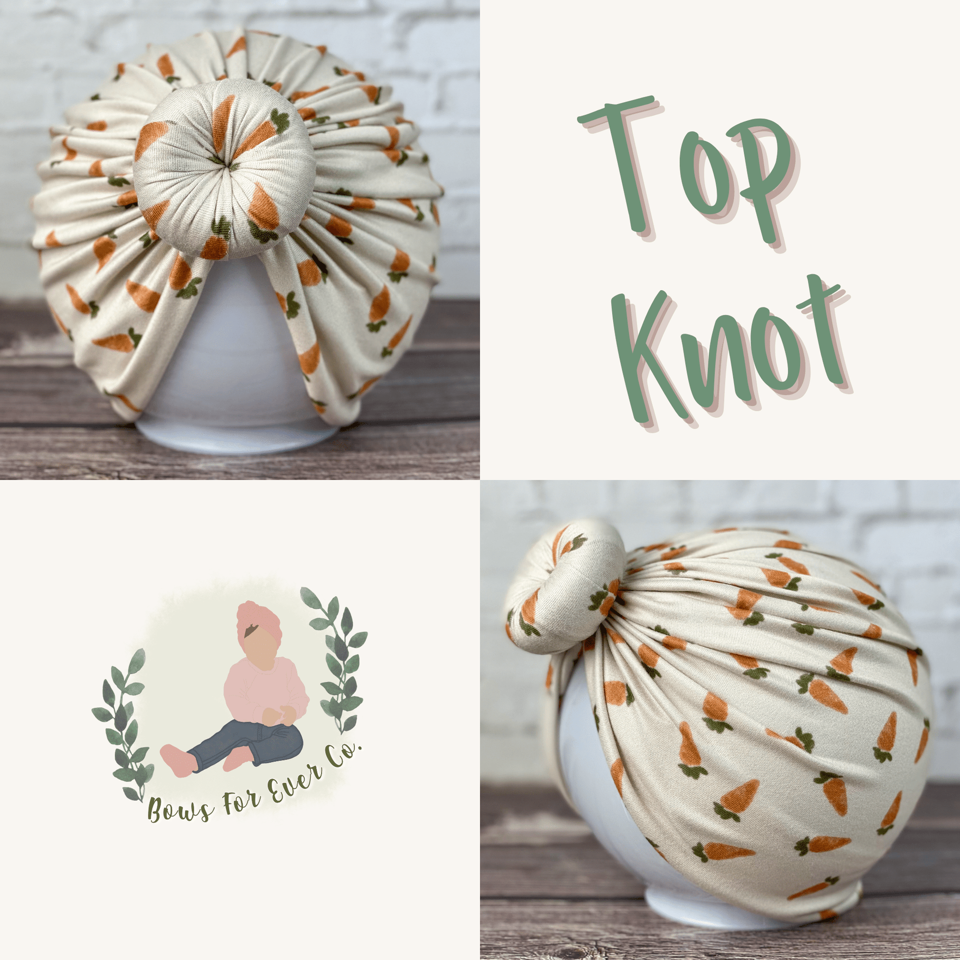 Our Carrots turban is made with a super soft and stretchy knit fabric.