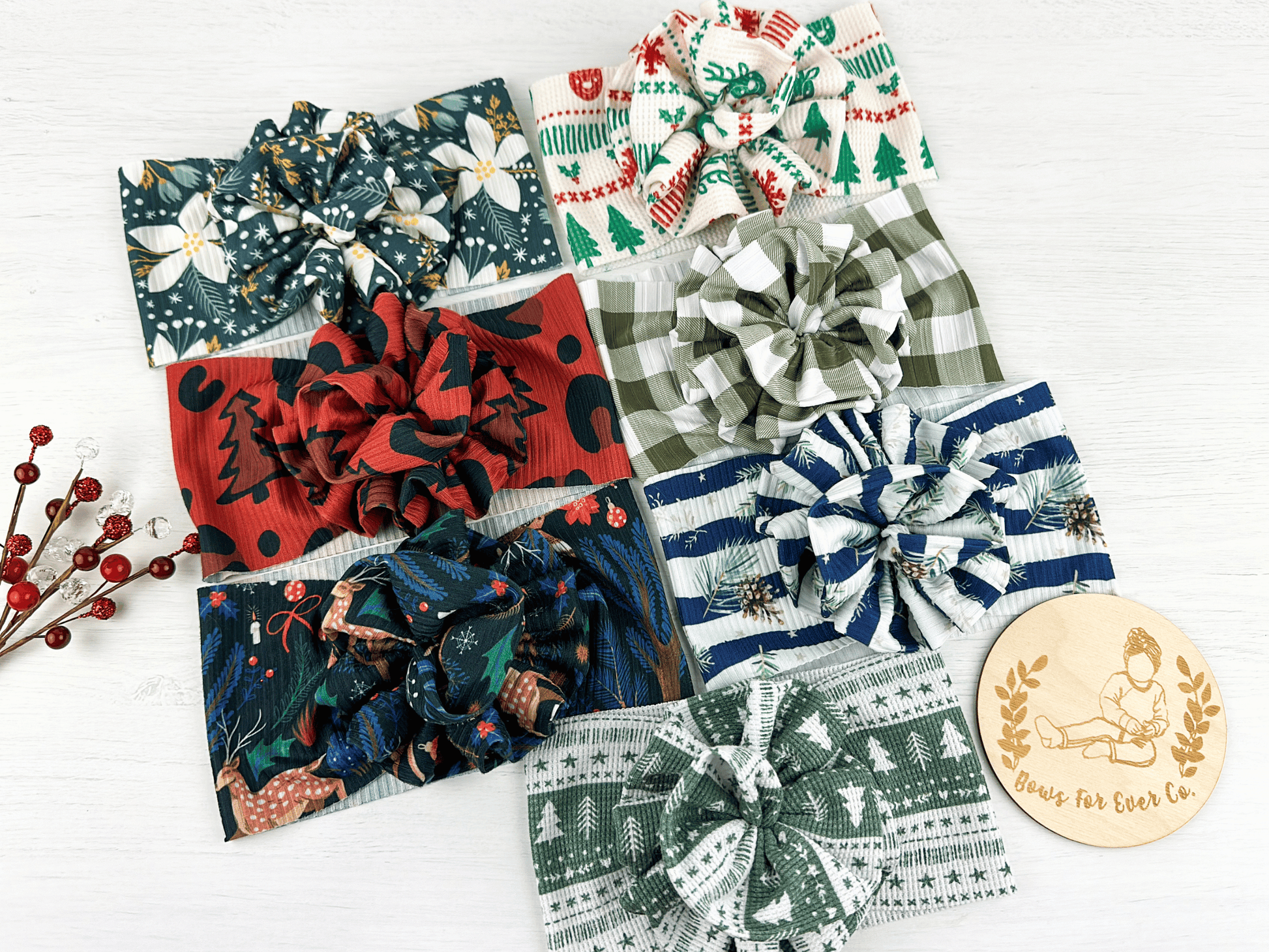 Our Christmas Mega Blossom Headwraps are a perfect staple for every little girl this holiday season.