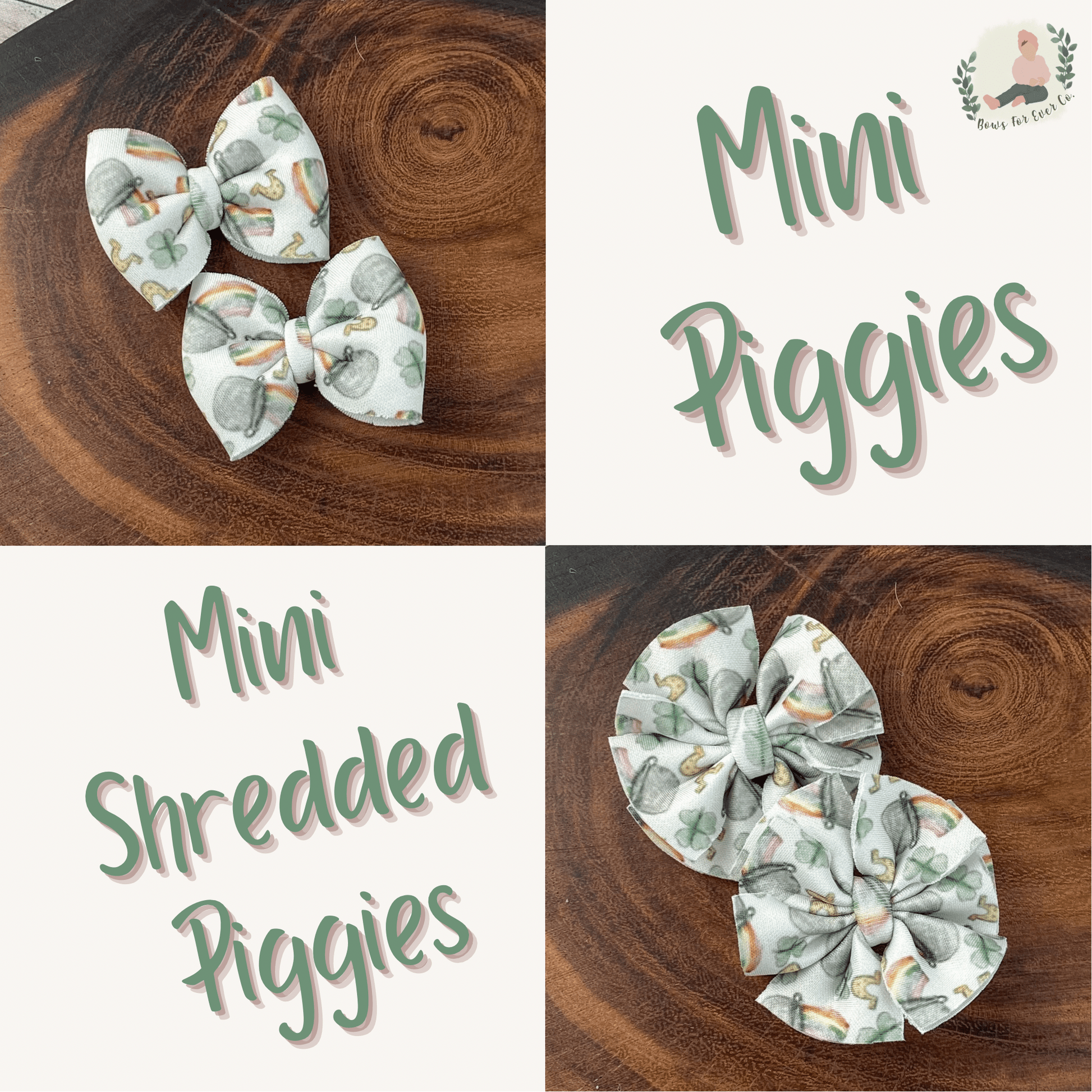 Big Bows are approximately 5 in. and Mini Piggies are approximately 2.5 in. and are sold as a set of 2.