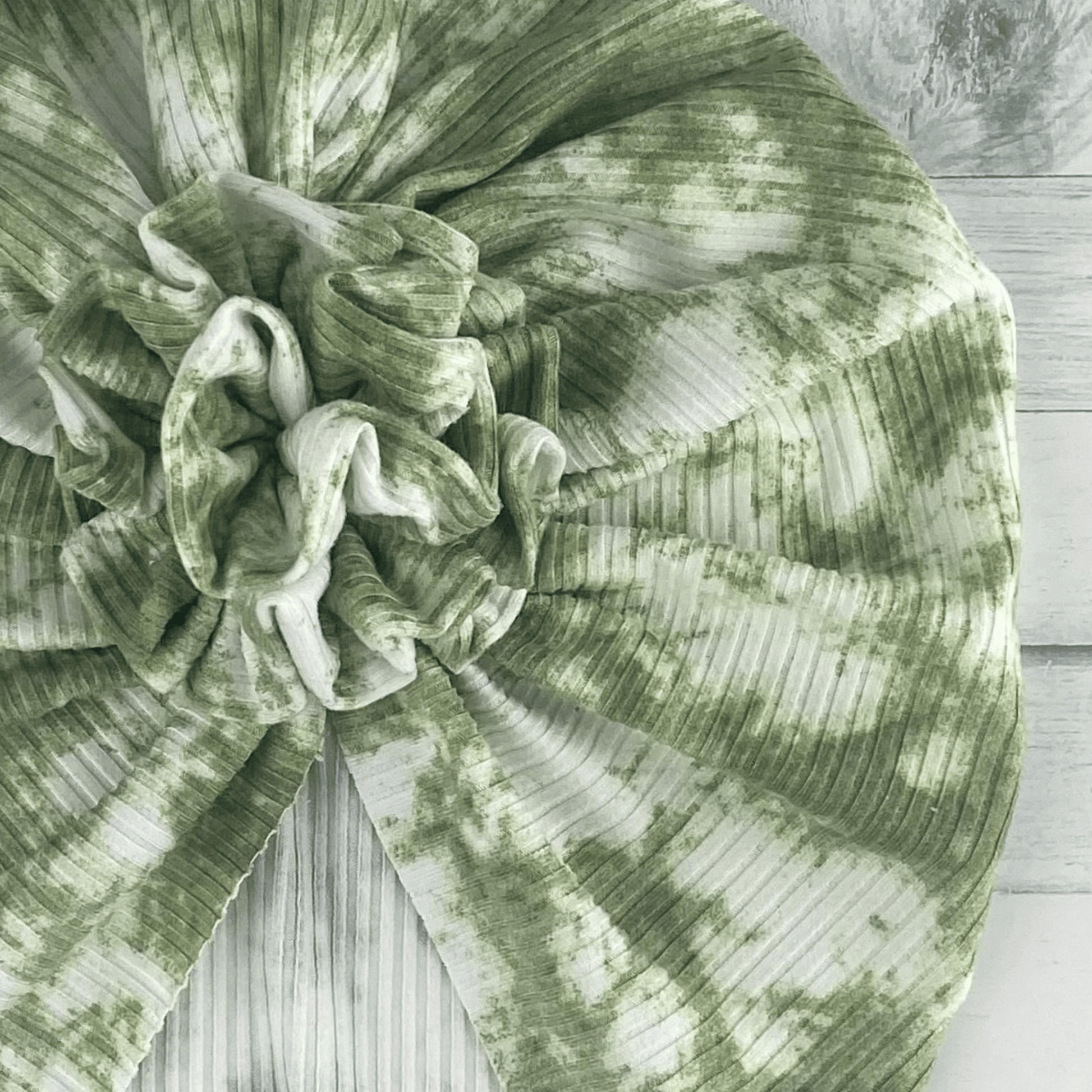 Our Ribbed Green Tie Dye turban is made with a super soft and stretchy knit fabric.