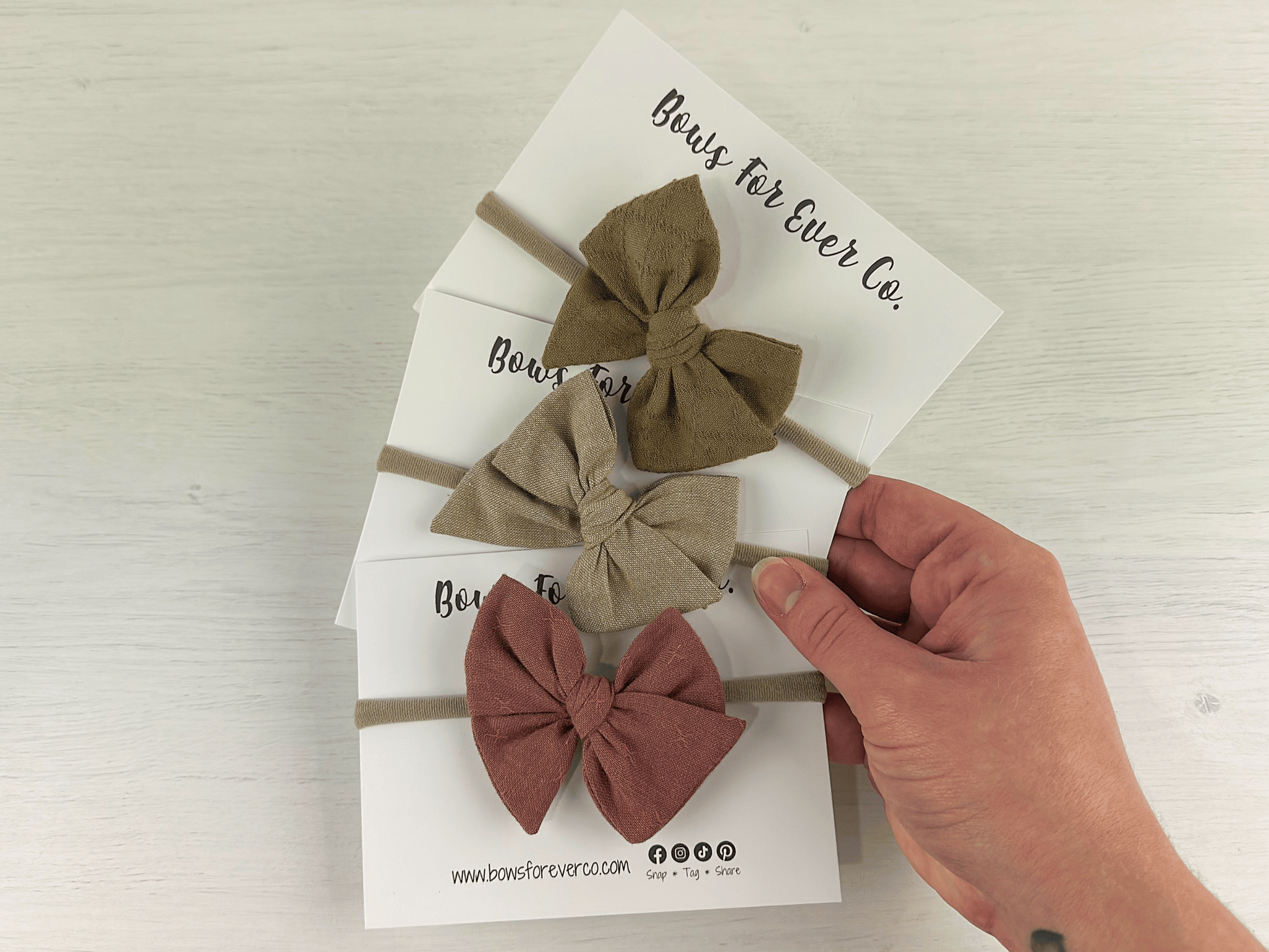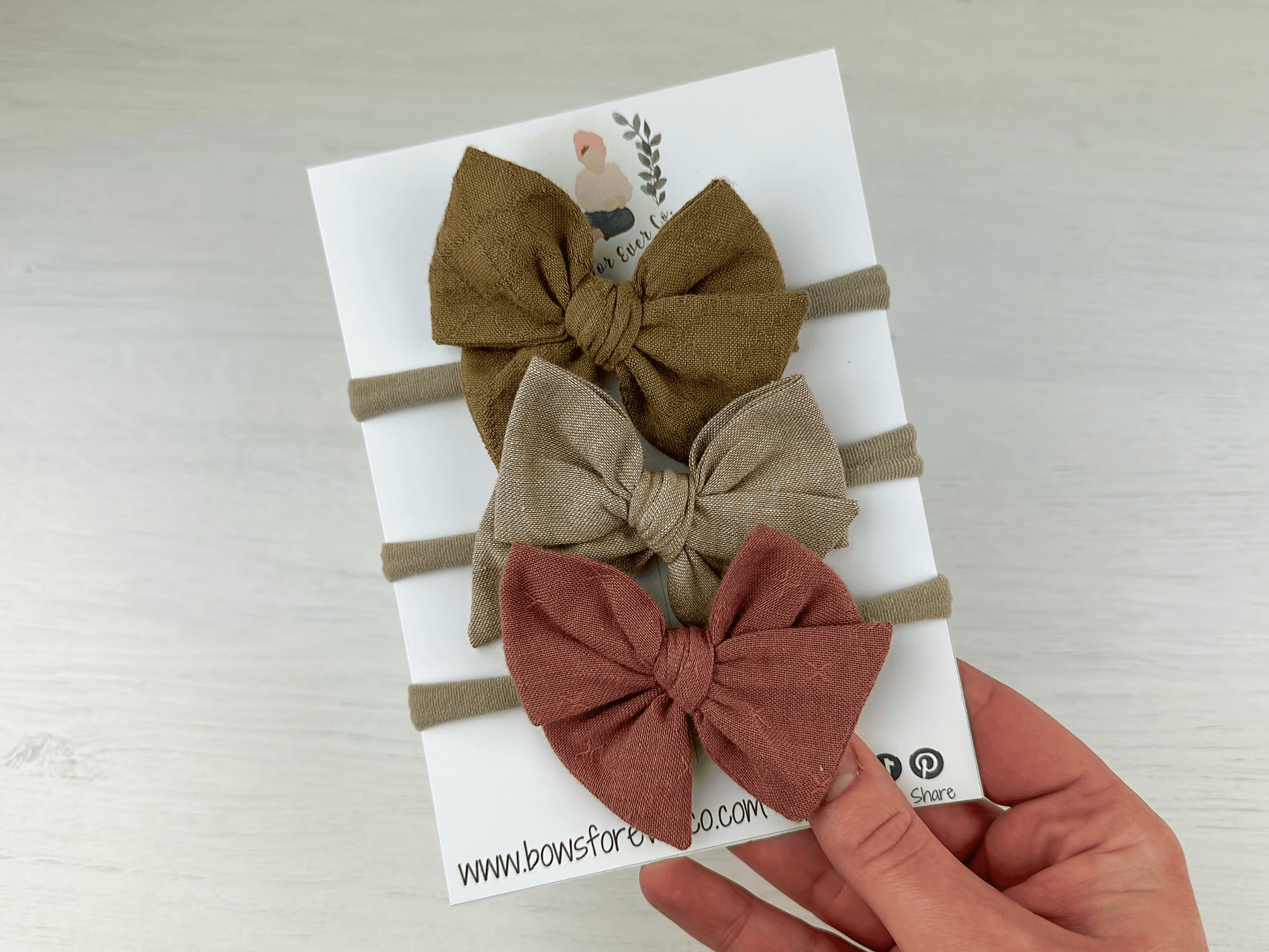 Our Nude Neutral Pinwheel Bows are available as a set of 3 or individually. Our pinwheel bows are hand tied and are roughly 3”x3”.