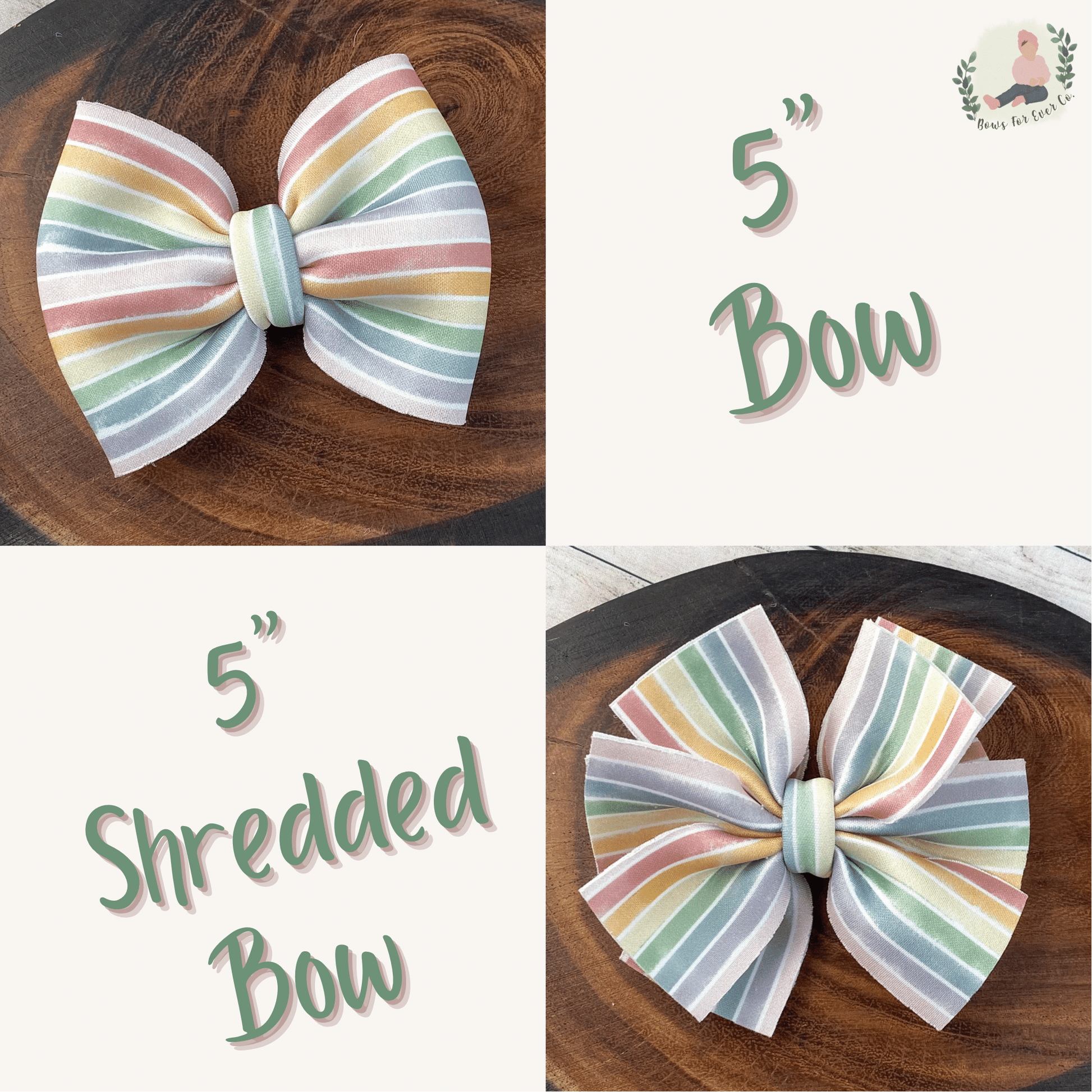 Our bows have sewn centers, so you won't have to worry about your little one pulling them apart! This also gives you the flexibility to move the clip or nylon to make your bow stand tall or lay flat.