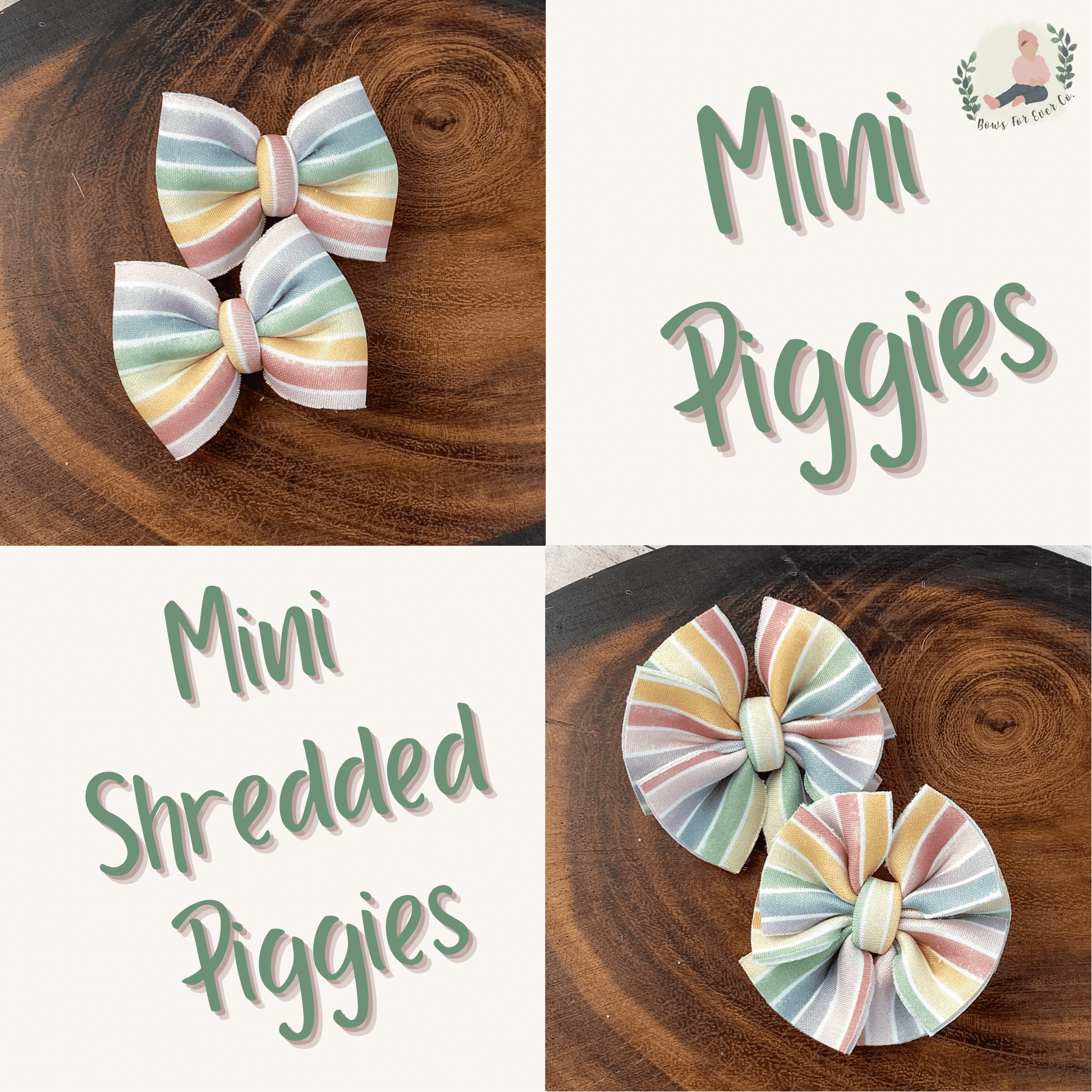 Big Bows are approximately 5 in. and Mini Piggies are approximately 2.5 in. and are sold as a set of 2.