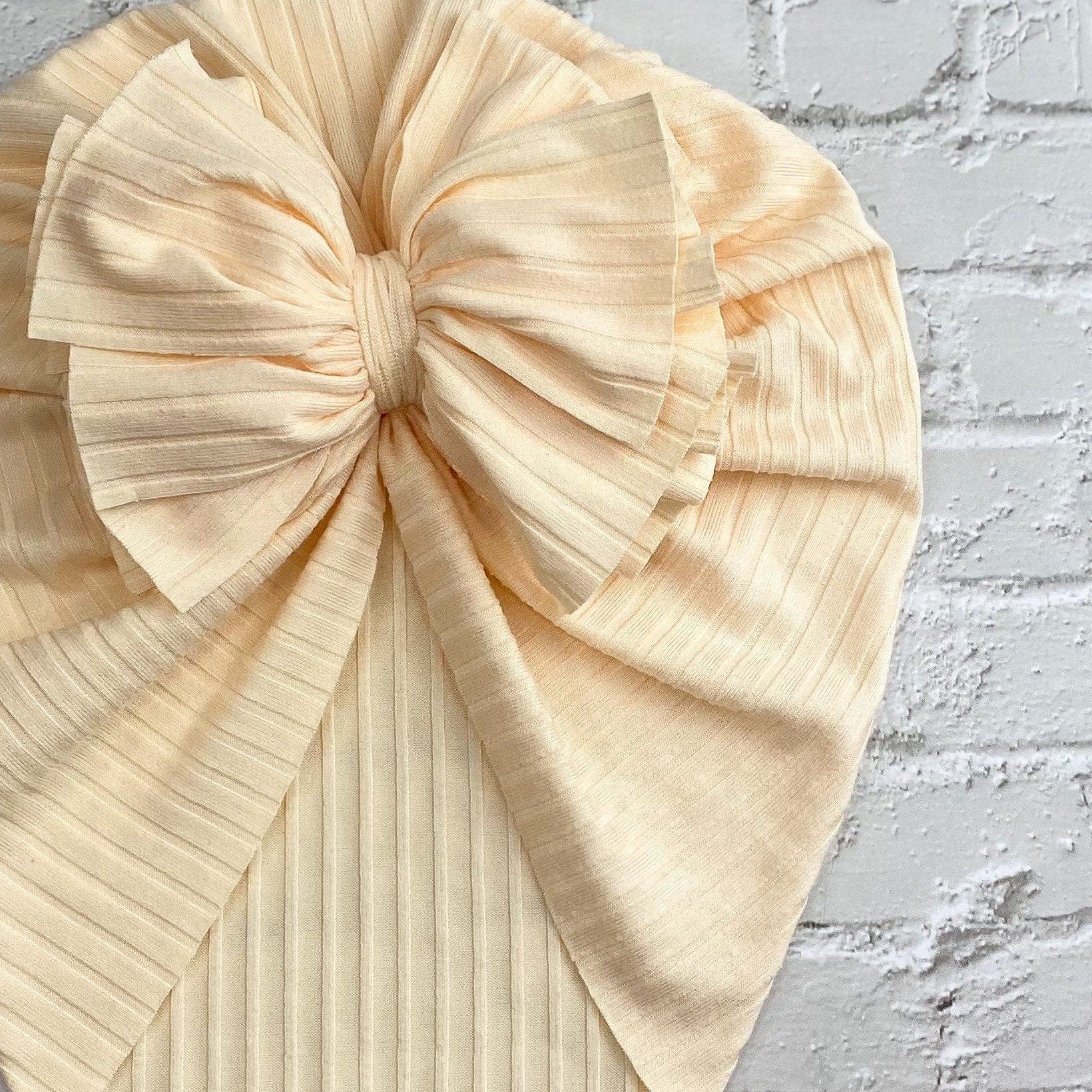 Our Ribbed Cream turban is made with a super soft and stretchy knit fabric.
