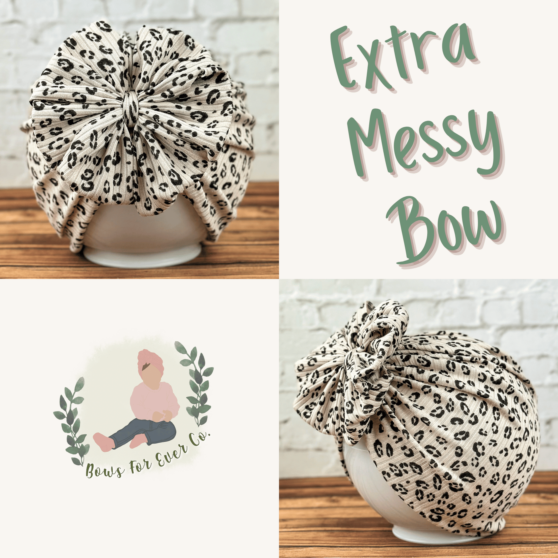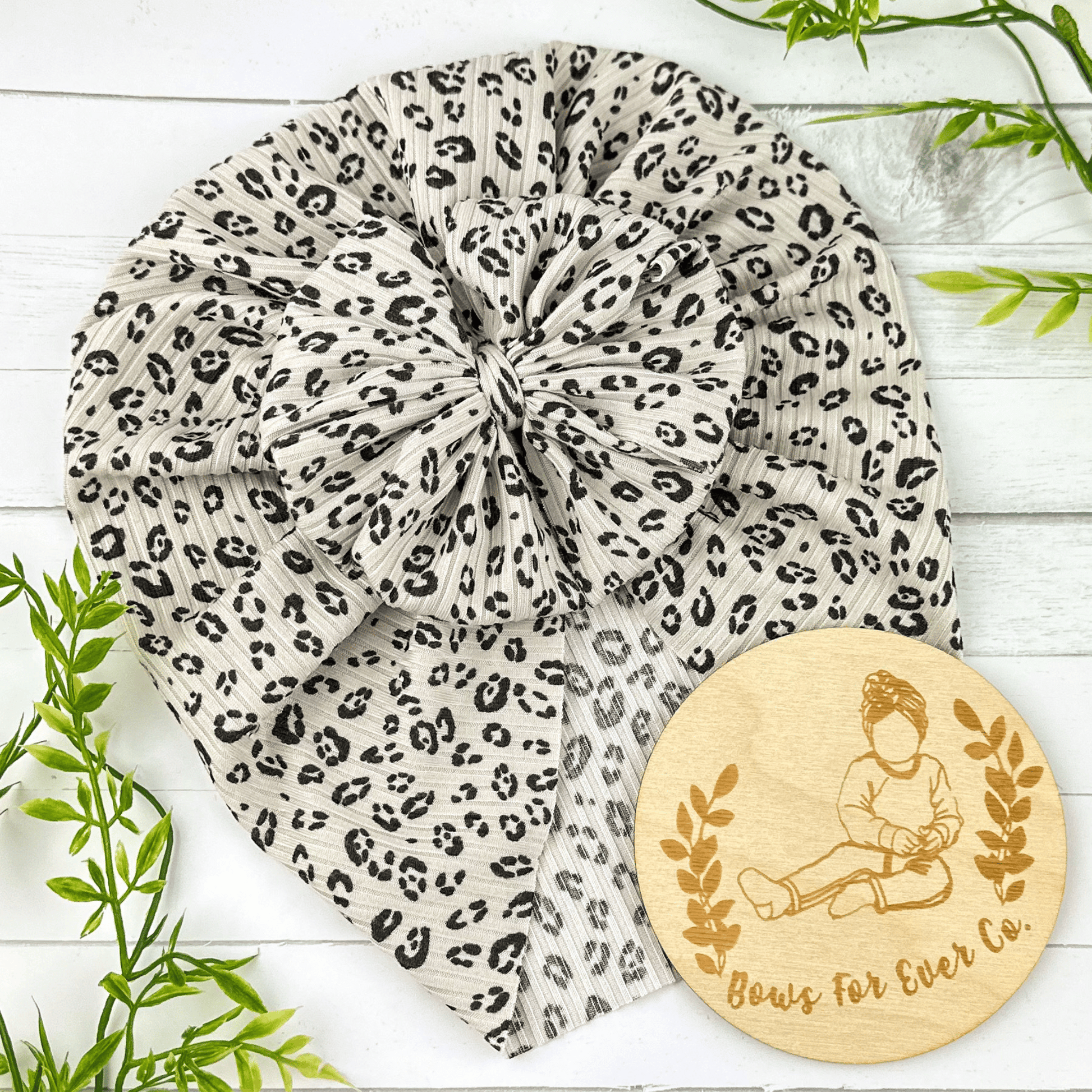 Our Ribbed Snow Leopard turban is made with a super soft and stretchy knit fabric.
