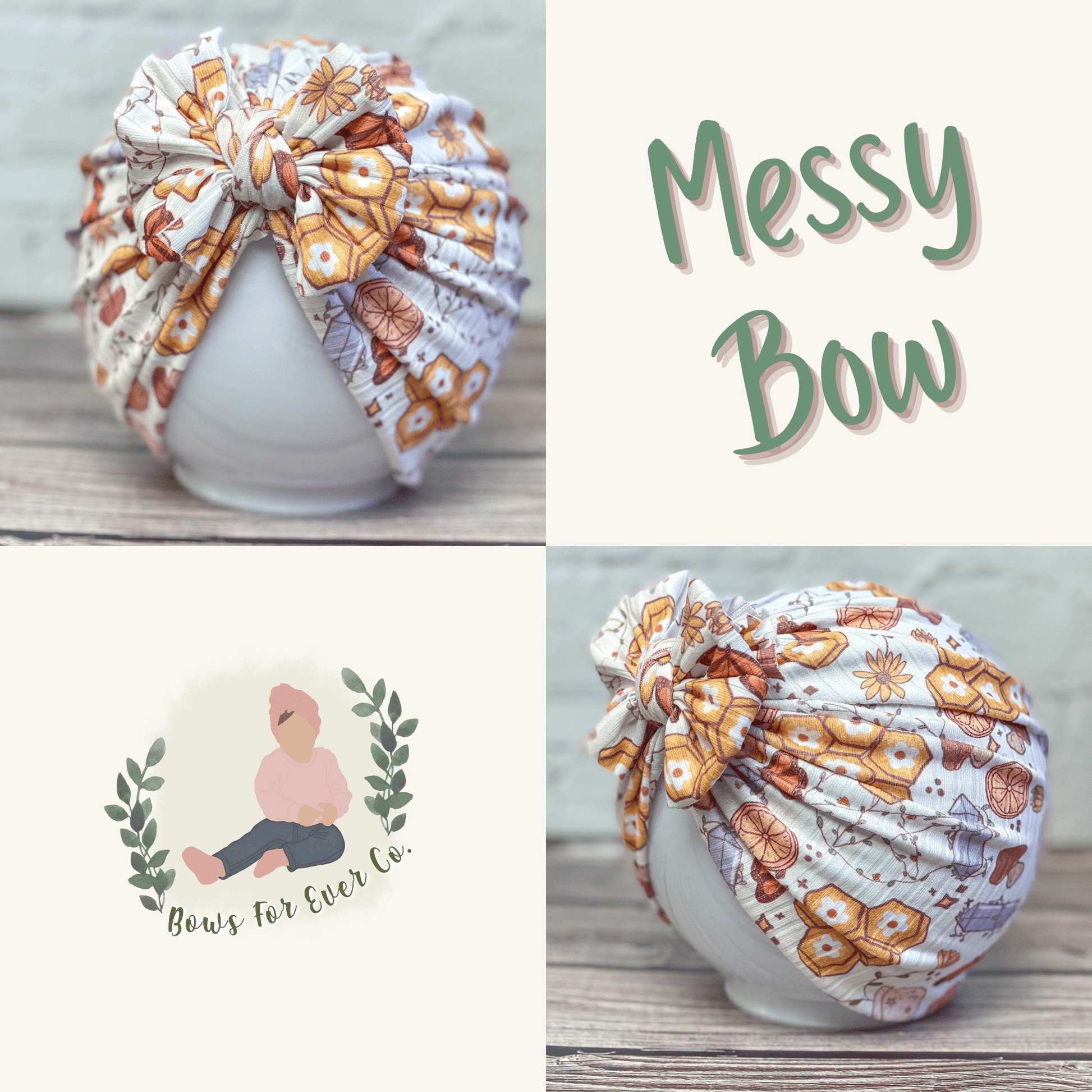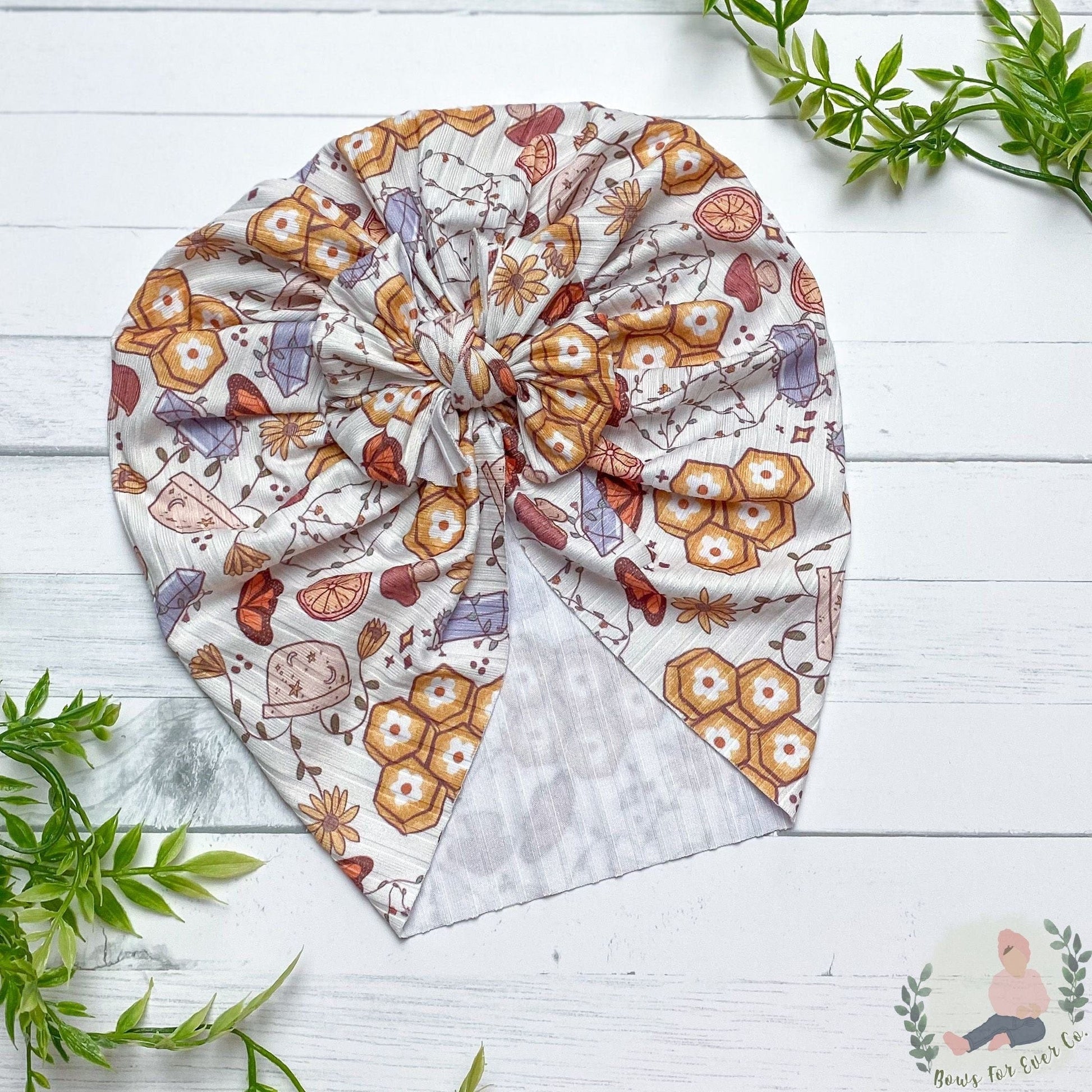 Our sizing is a general guideline based on average head circumferences. Sizes based on age can vary widely, as every head has a different shape and size. If you are unsure of what size to order, you can send a message or leave a note on your order with the specific head measurement and I can tailor it to give you the best fit.