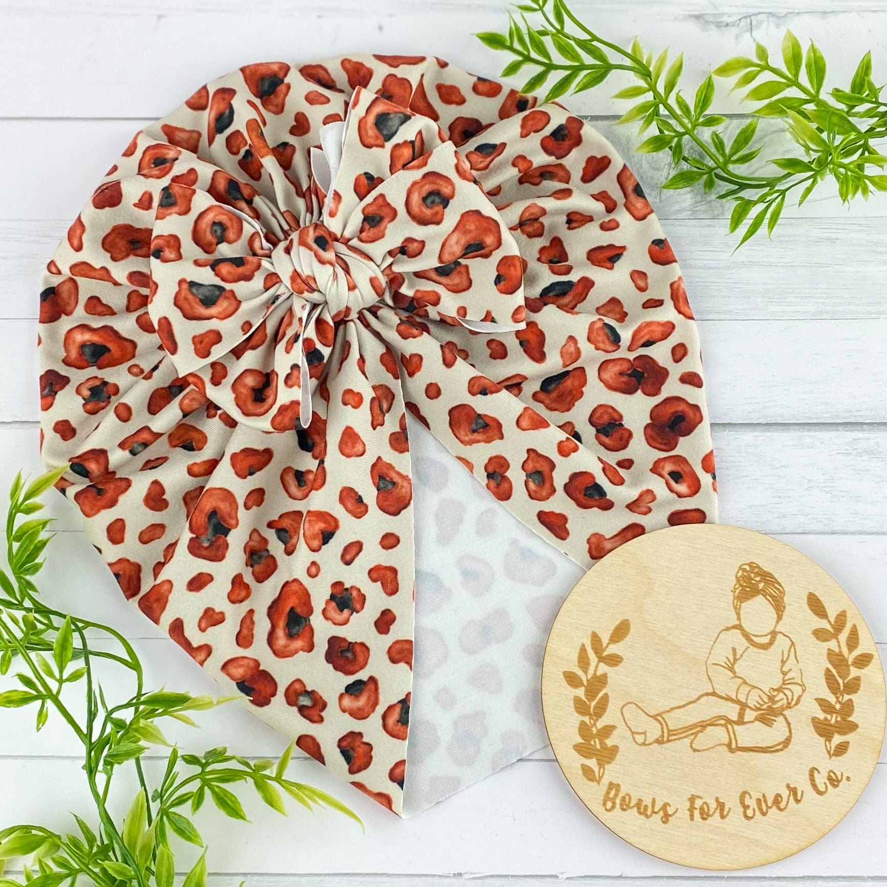 Our Rust Black Cheetah turban is made with a super soft and stretchy knit fabric '.