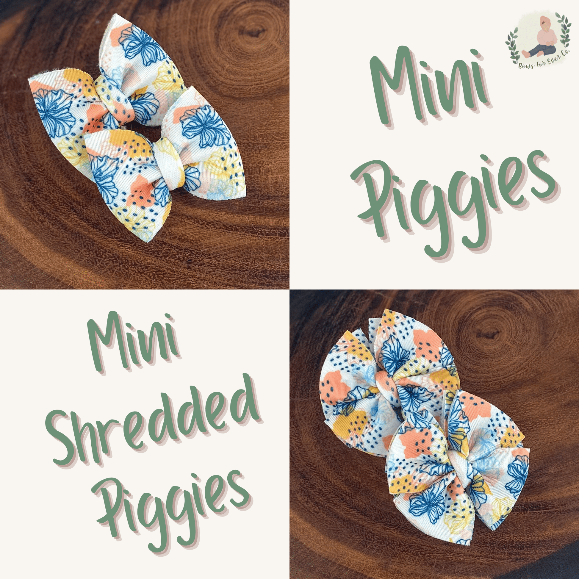 Big Bows are approximately 5 in. and Mini Piggies are approximately 2.5 in. and are sold as a set of 2.