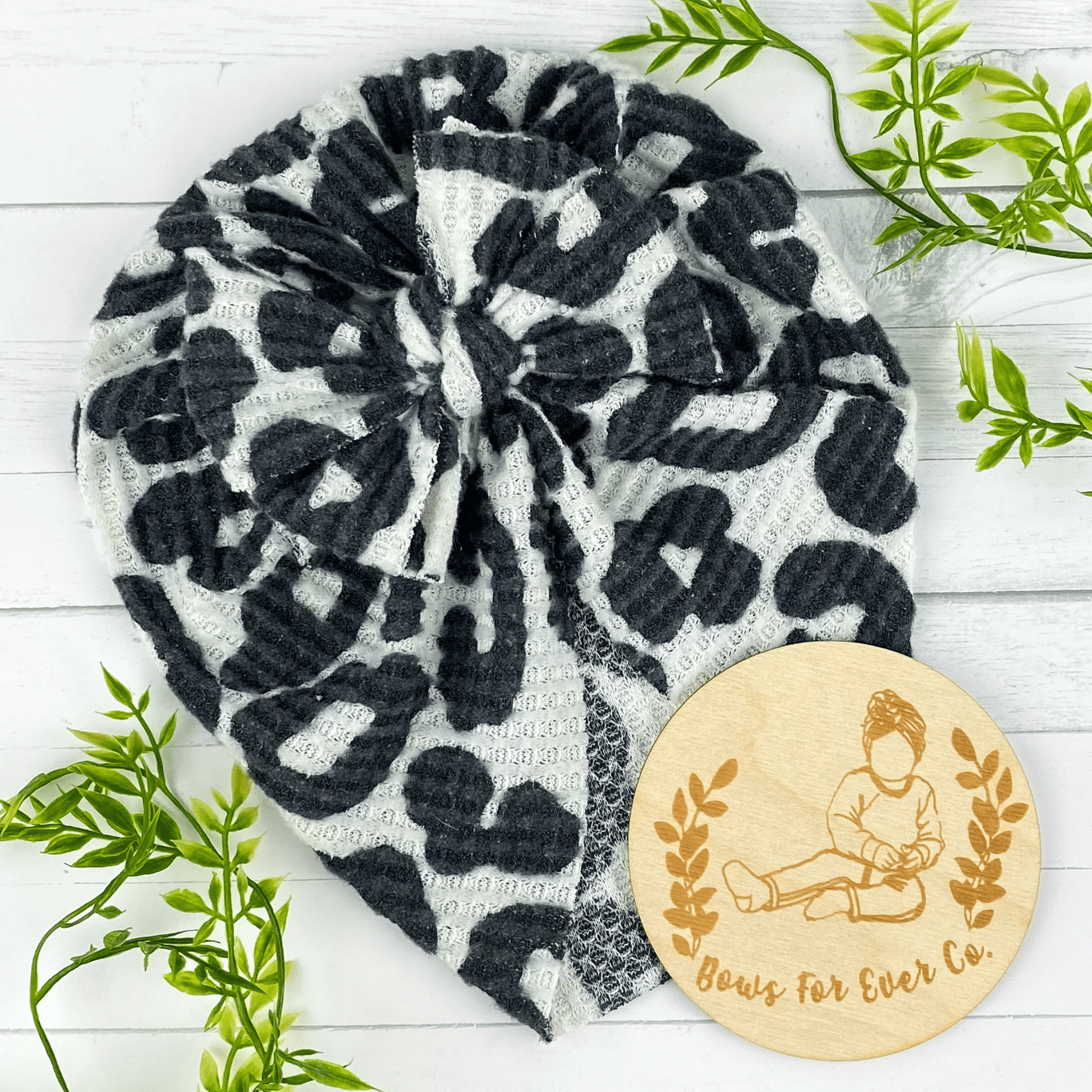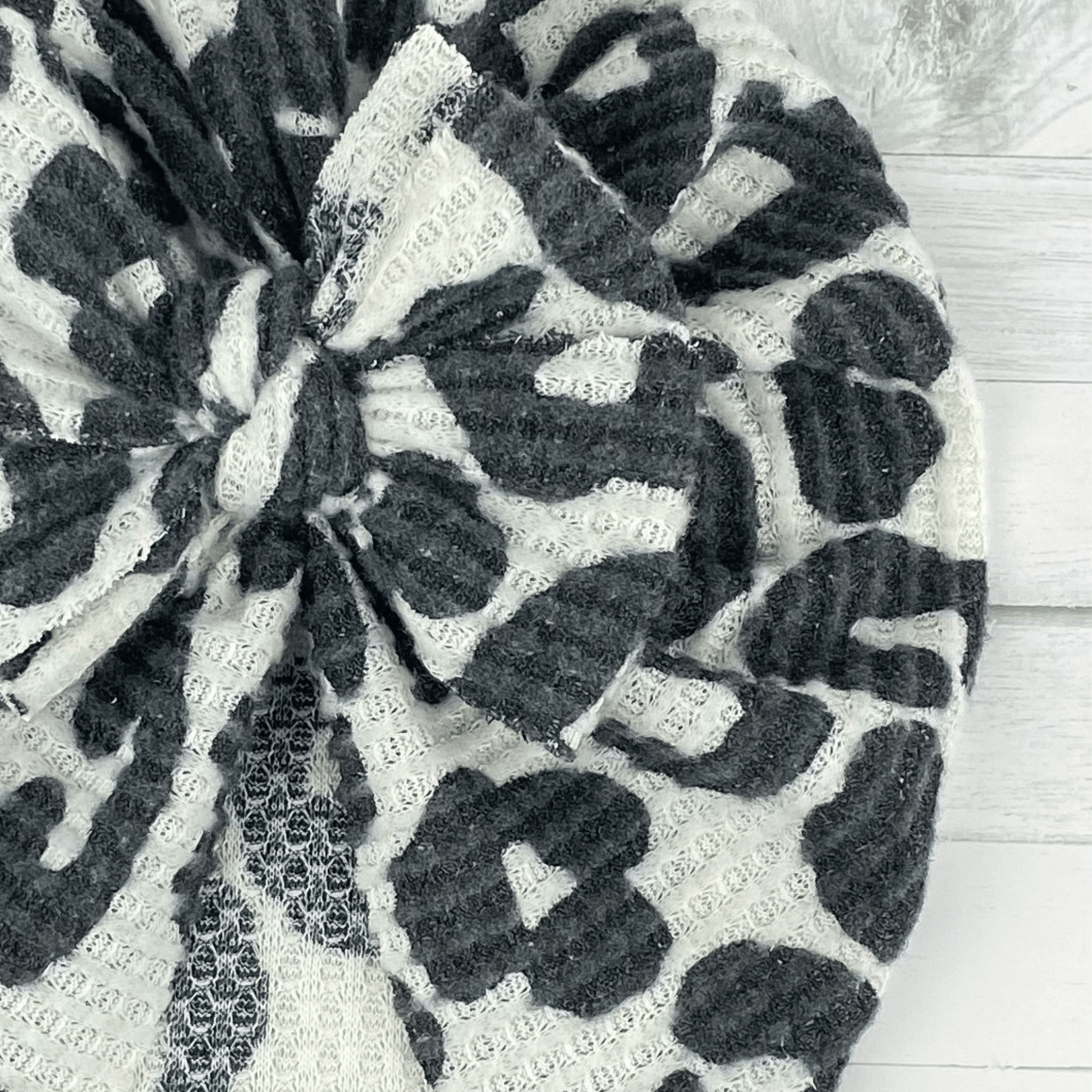 Our White Cheetah Waffle Knit turban is made with a super soft and stretchy knit fabric.
