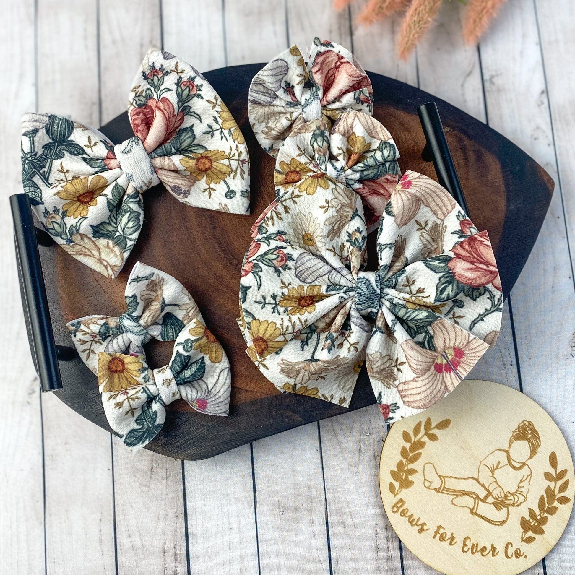 Our bows have sewn centers, so you won't have to worry about your little one pulling them apart! This also gives you the flexibility to move the clip or nylon to make your bow stand tall or lay flat.