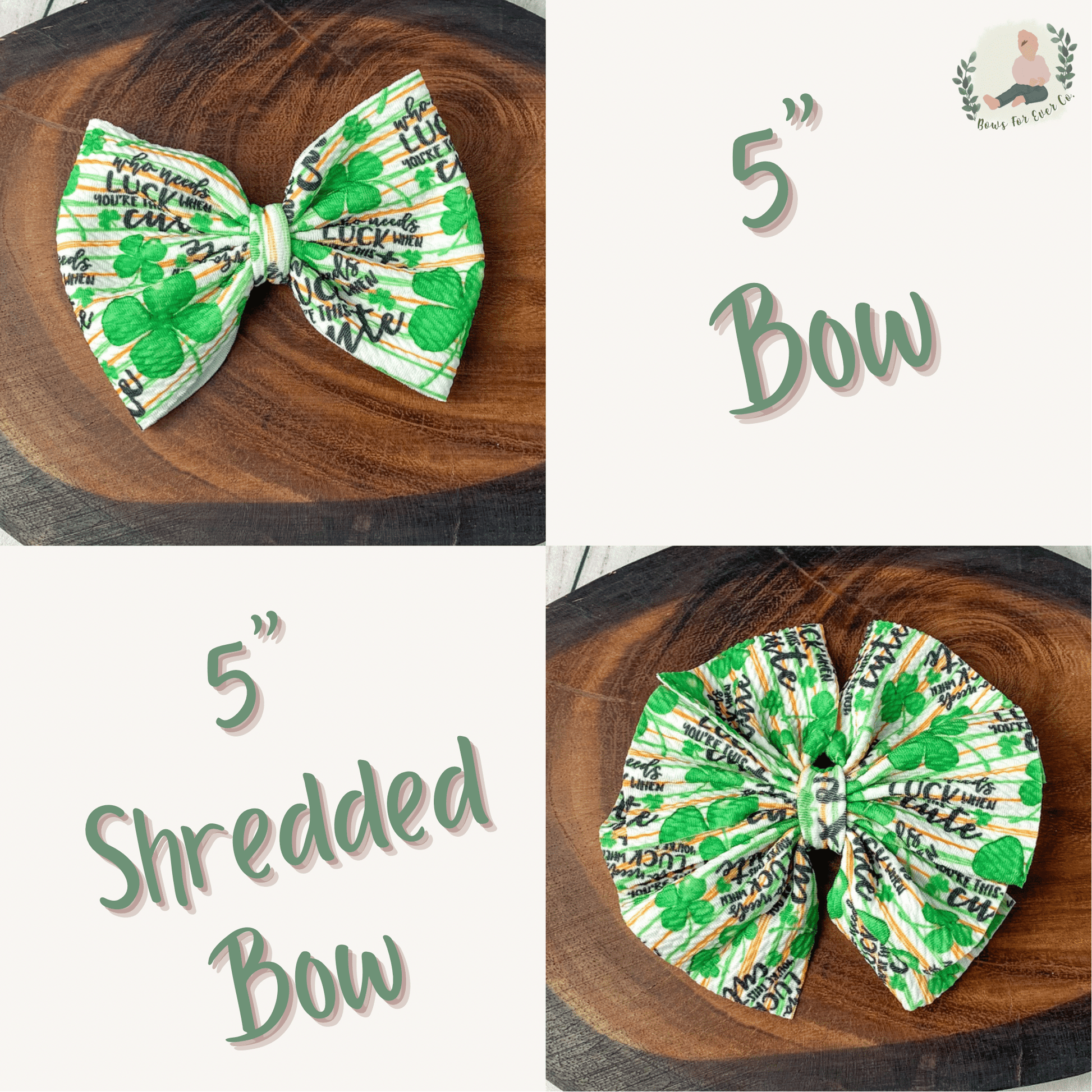 Our bows have sewn centers, so you won't have to worry about your little one pulling them apart! This also gives you the flexibility to move the clip or nylon to make your bow stand tall or lay flat.